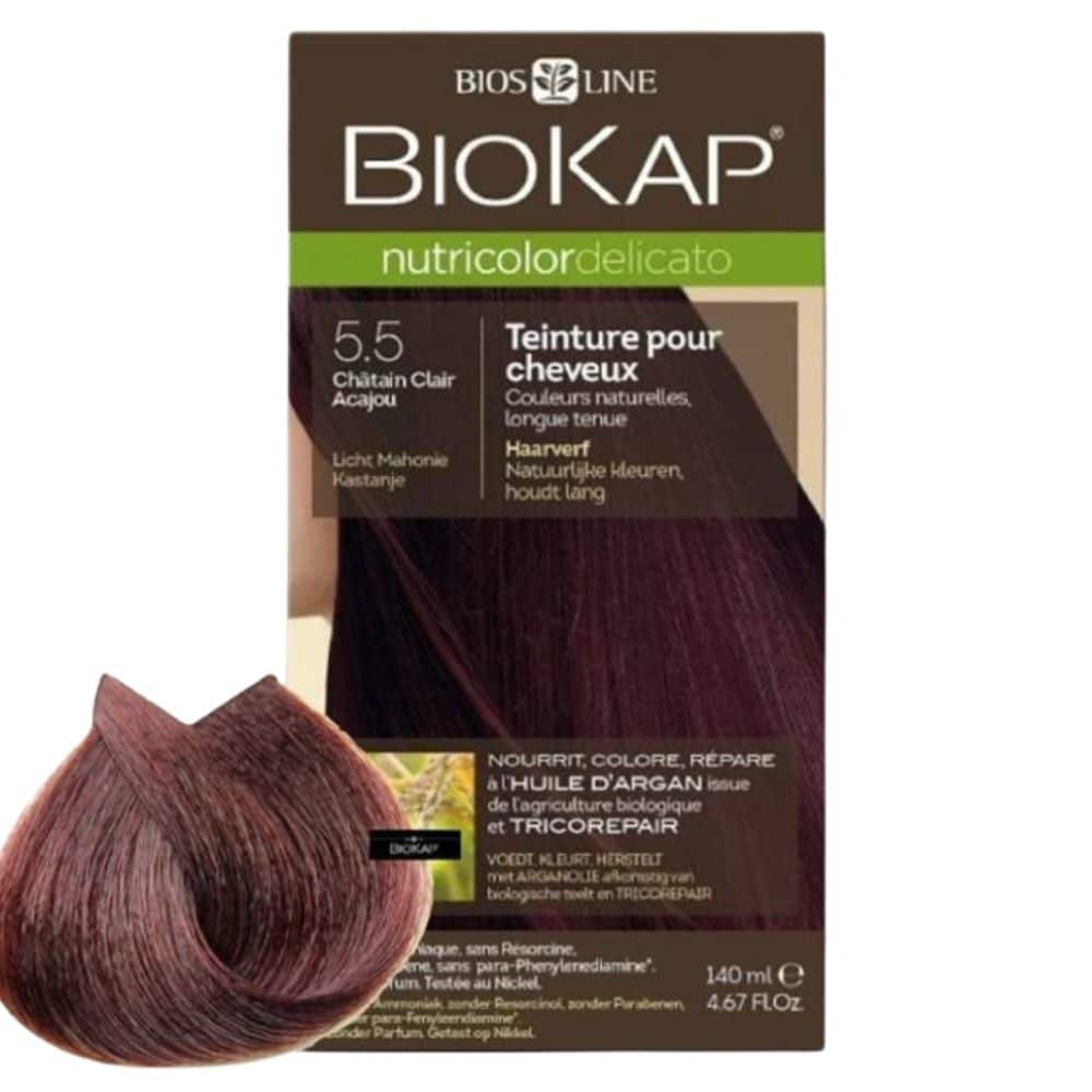 BIOKAP – Nutricolor Delicato Coloration Naturelle Cheveux Délicats – 140ml – 5.5 – Châtain Clair Acajou
