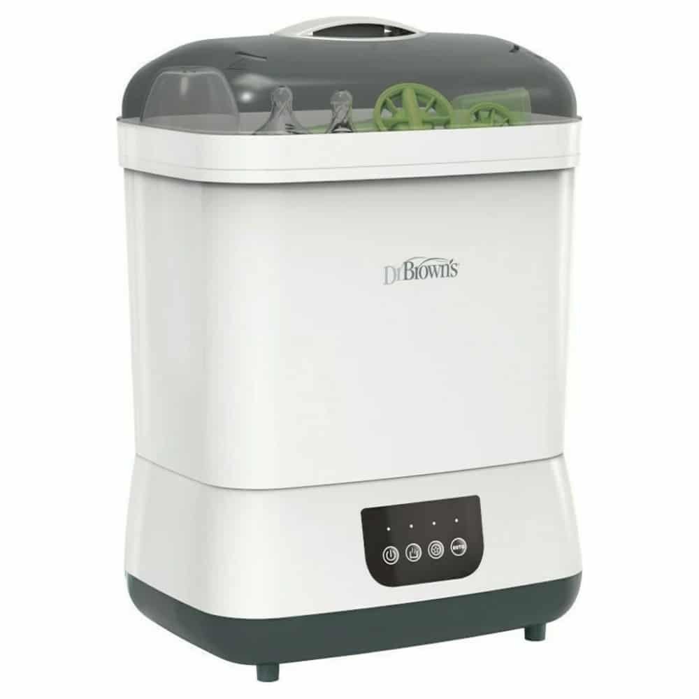 Le stérilisateur et sécheur électrique Dr. Brown’s AC178-INTL offre une solution efficace pour stériliser et sécher jusqu’à six biberons, pièces de rechange pour tire-lait, sucettes et anneaux de dentition. Il utilise la stérilisation à la vapeur pour éliminer 99,9 % des germes en 55 minutes. Doté de la possibilité de stériliser, sécher ou les deux simultanément, il garantit un environnement sûr pour bébé.