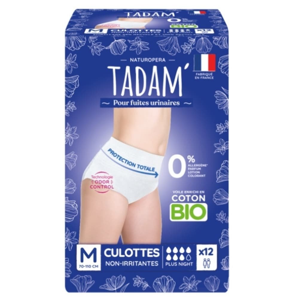 TADAM’ – Fuites Urinaires Culottes Non-irritantes Bio – Maxi Nuit 70-110cm M – 12u